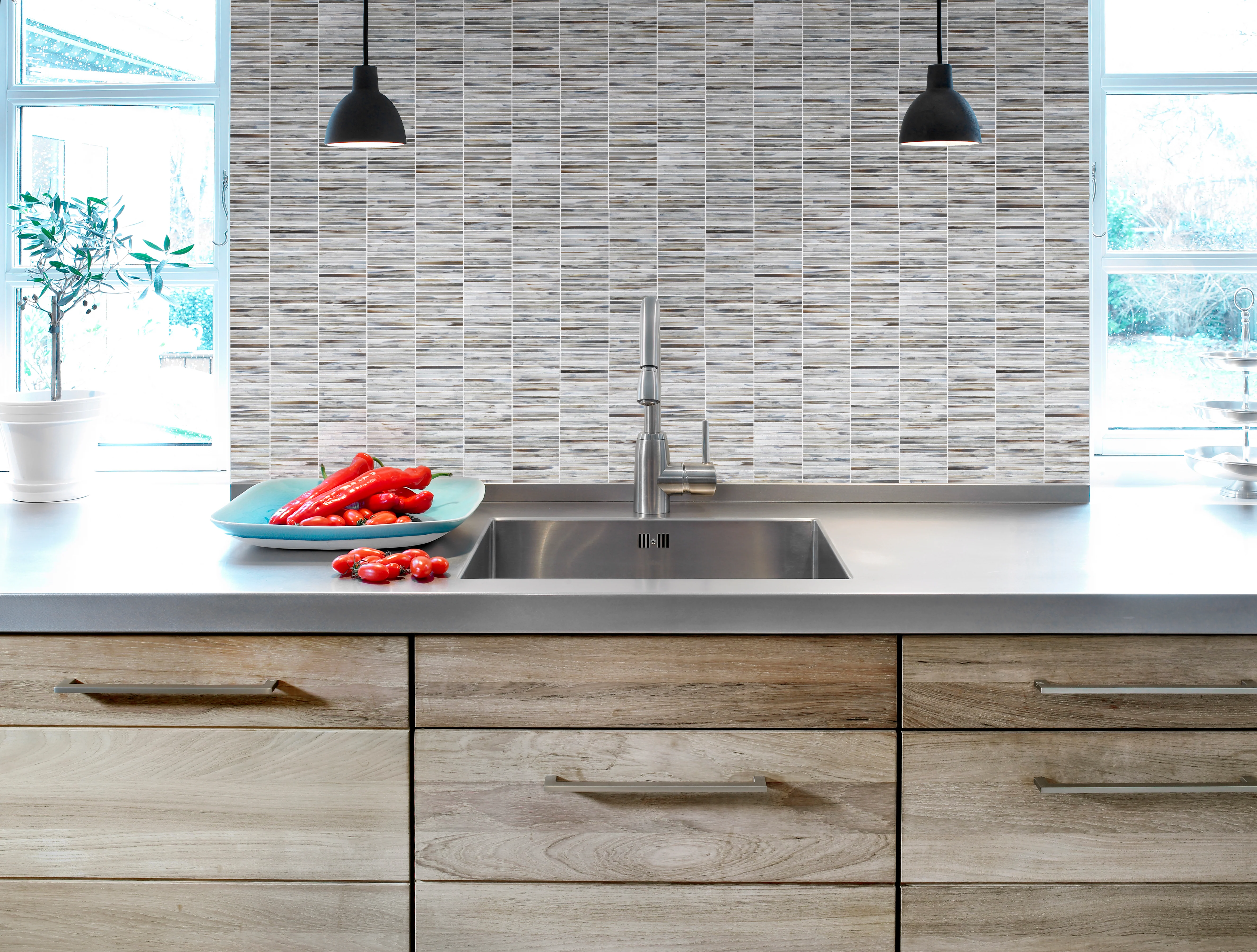 Bask in the beauty of Luna Kit Kat Art Glass. Crafted using cathedral glass, this tile adds a layer of depth to any space. Its monochromatic design evokes refinement, and invites balance into your home.